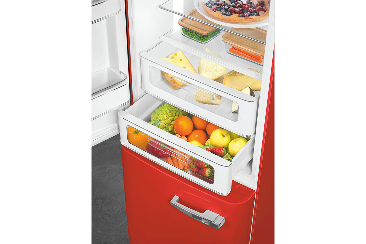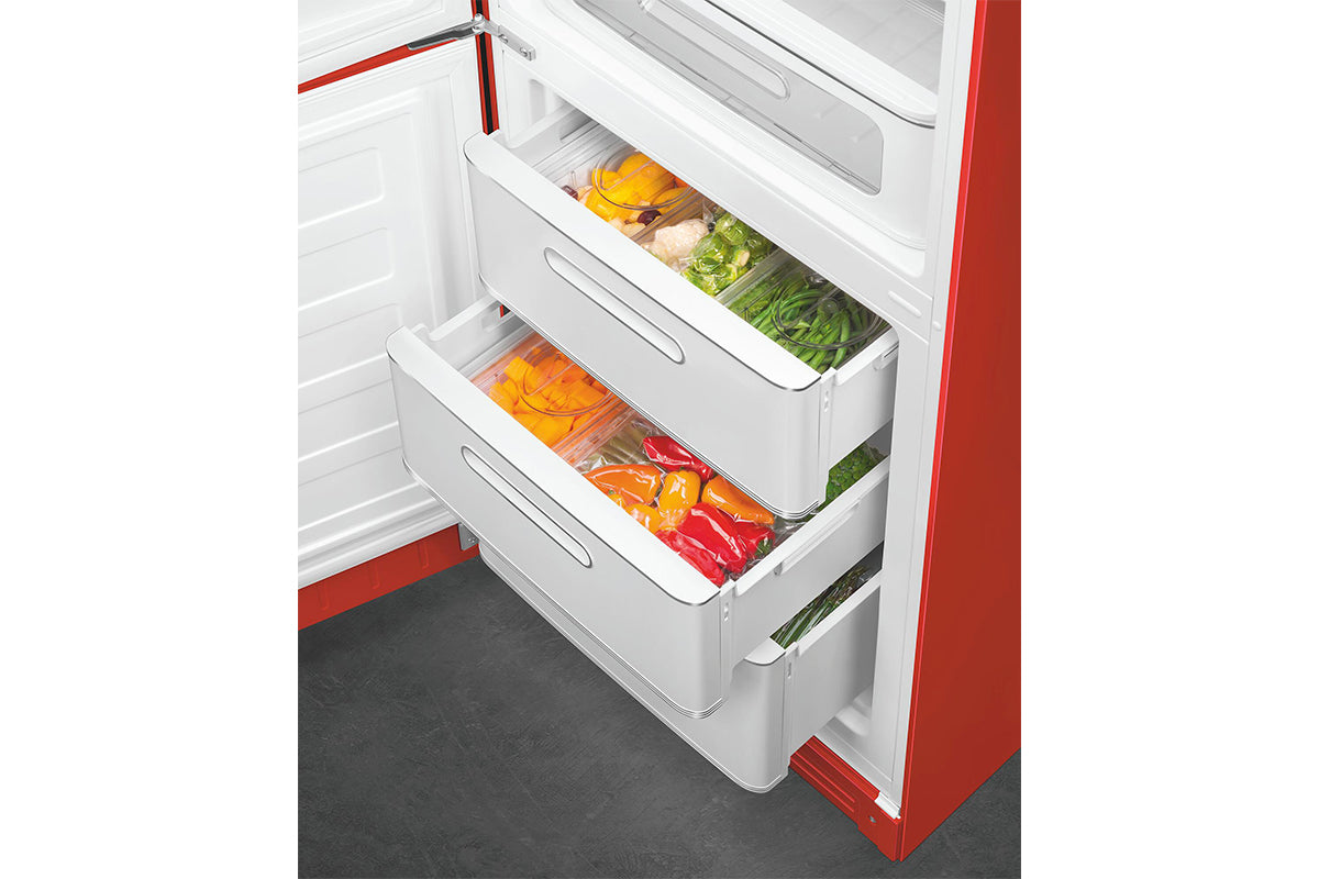 Smeg's FAB fridge is often a distinctive element in the kitchen. Its rounded shapes, chromed details and bright colours are key expressions of style and personality. The FAB32 offers a sizable capacity to suit your storage needs and features a new stylish interior.