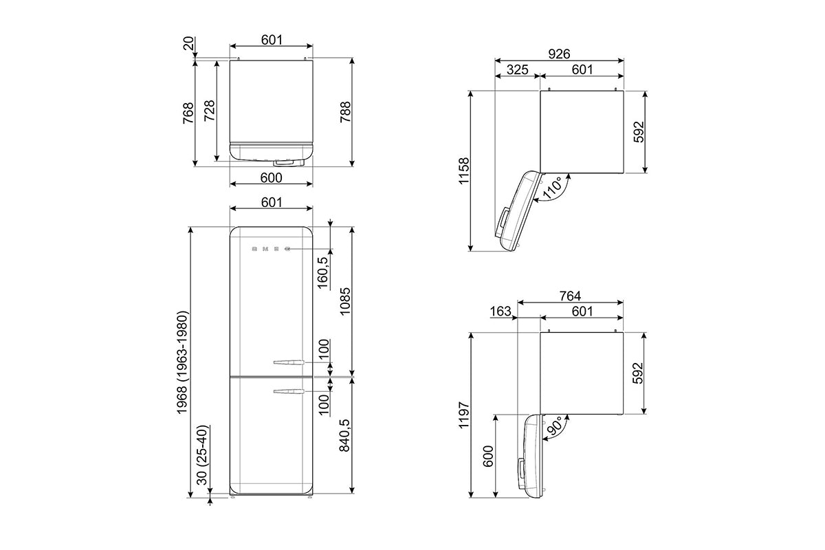 When positioning these appliances adjacent to a wall or kitchen unit a gap of 175mm must be left on the hinged side of the product to allow the door to open.