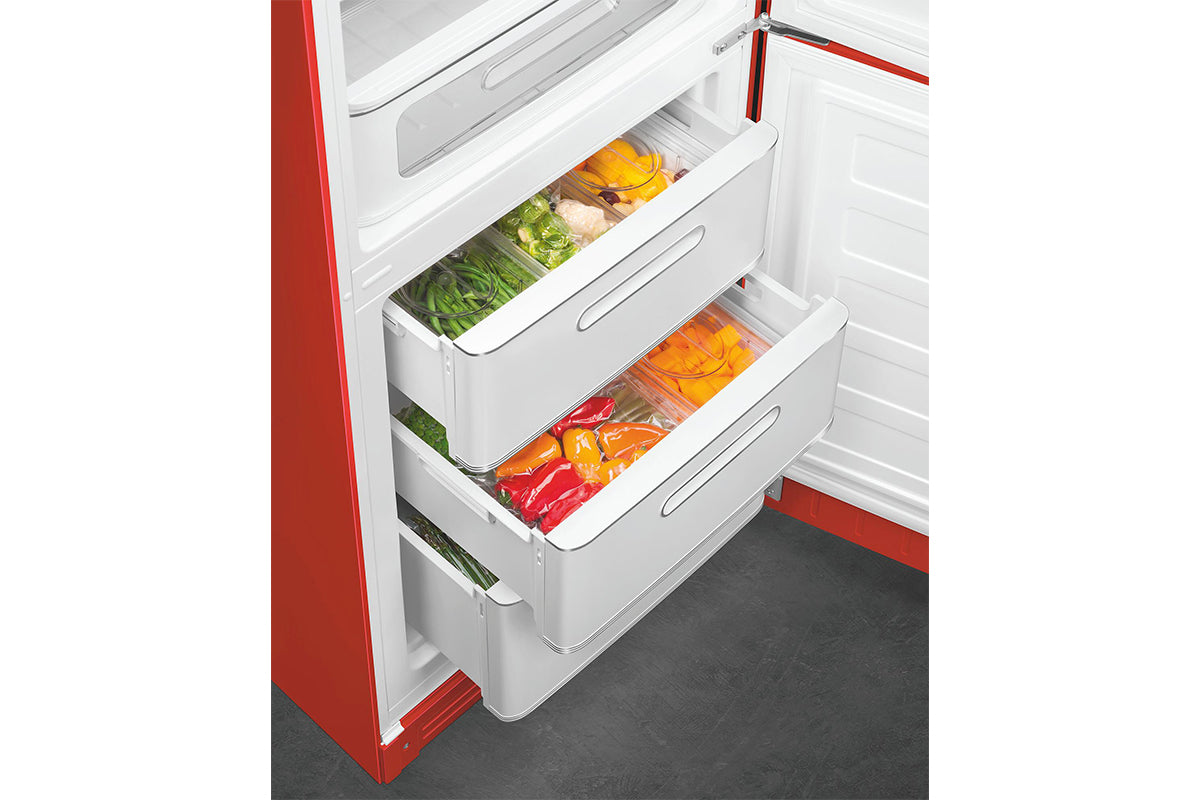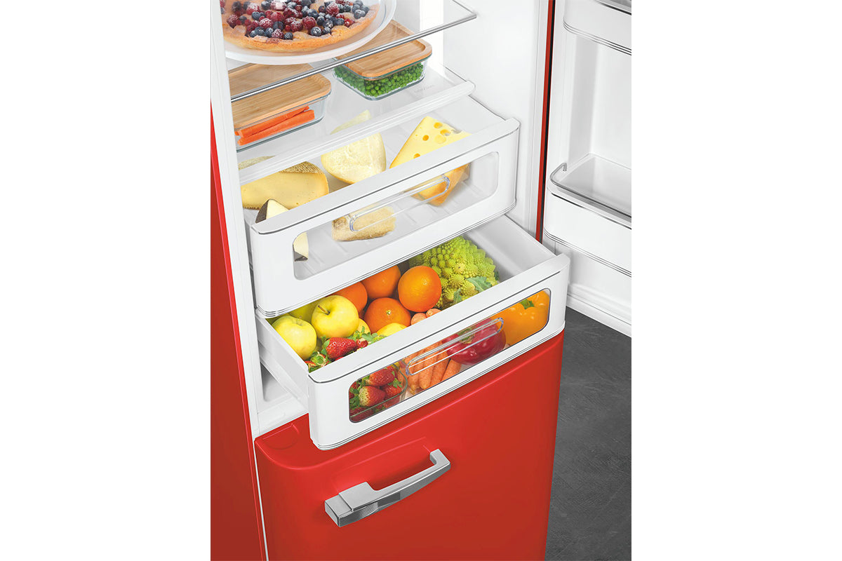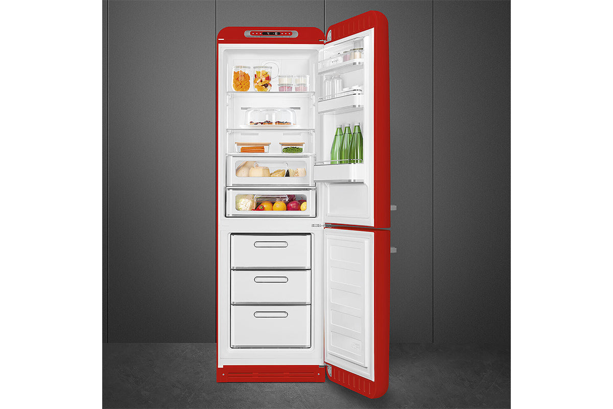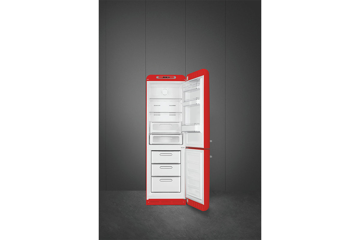 Smeg's FAB fridge is often a distinctive element in the kitchen. Its rounded shapes, chromed details and bright colours are key expressions of style and personality. The FAB32 offers a sizable capacity to suit your storage needs and features a new stylish interior.