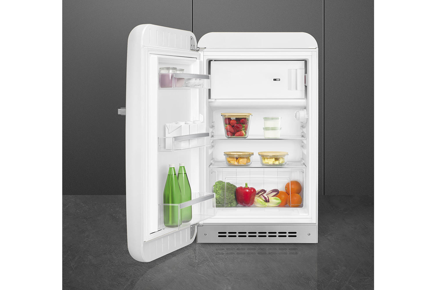 Coloured minibar with a 50's inspired design perfect for living, office or hotel rooms.