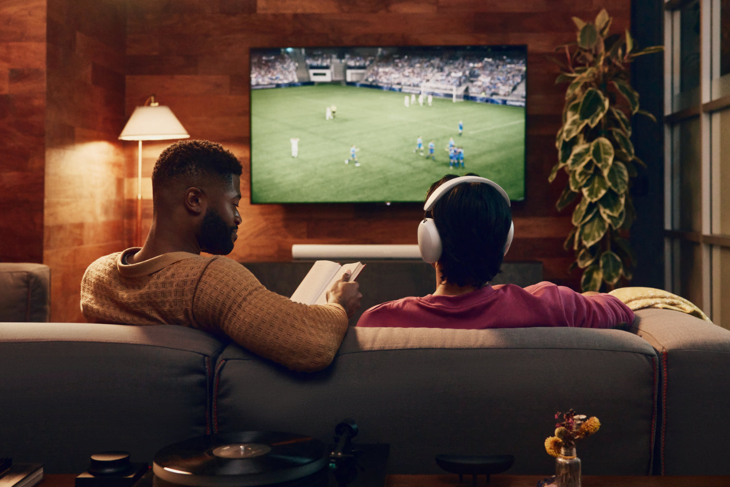 Use TV Audio Swap with a compatible Sonos soundbar to instantly move sound to your headphones. Feel transported to your own private theatre, where spatial audio with Dolby Atmos envelops you from every direction. Connect two Sonos at once to enjoy a movie with a companion, or immerse yourself in couch co-op gaming.[4]