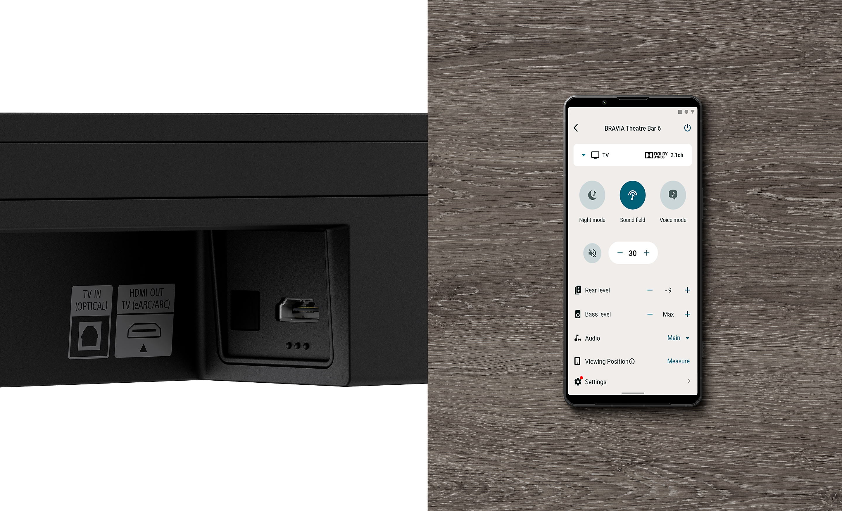The BRAVIA Connect smartphone app guides you through initial settings, assists with troubleshooting, and lets you control volume, sound field and more. It also notifies you about software updates and lets you control a compatible TV too.