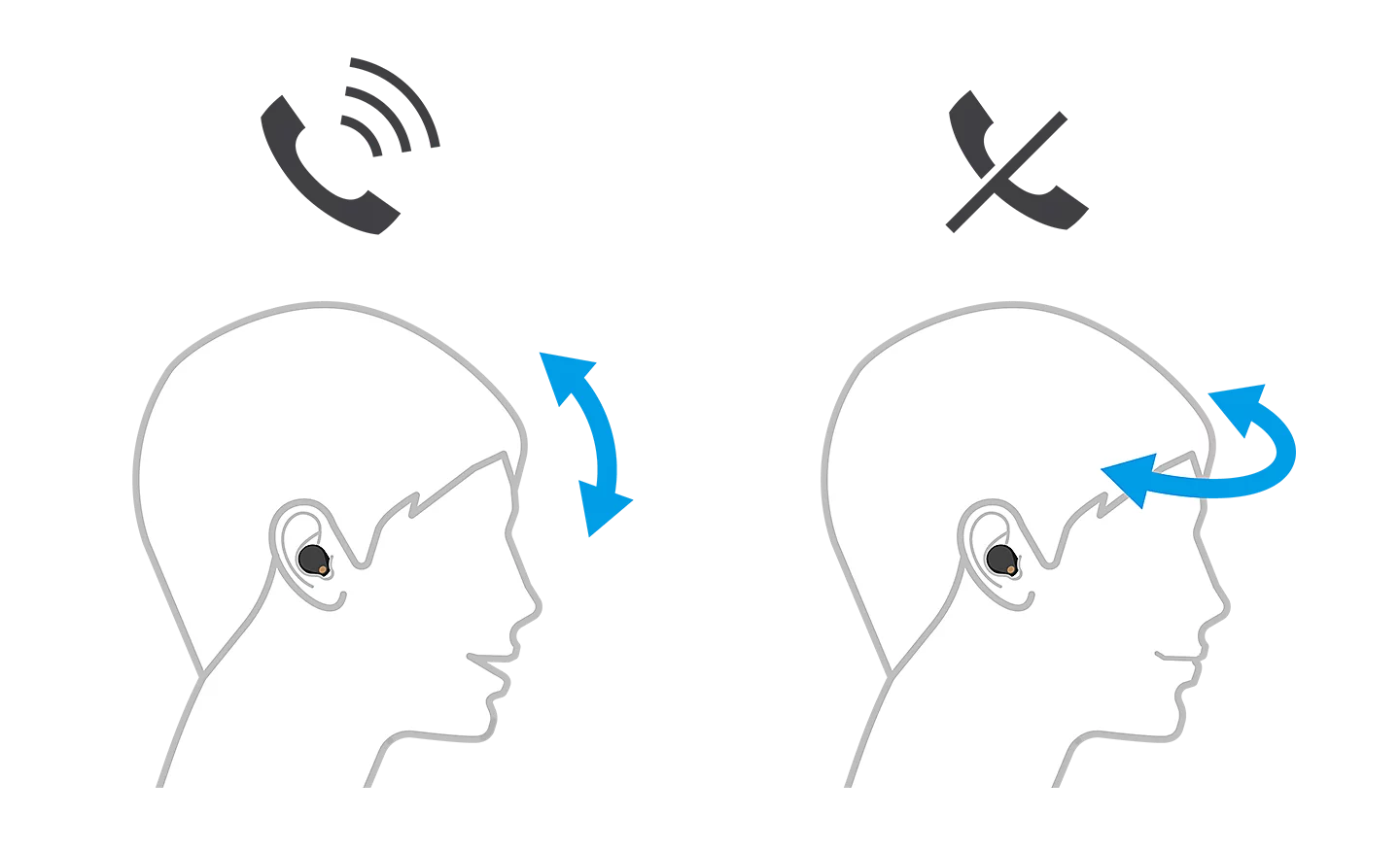 You can operate your earbuds using natural head gestures, like receiving or declining calls[21] or operating Auto Play[22][23] by nodding or shaking your head.