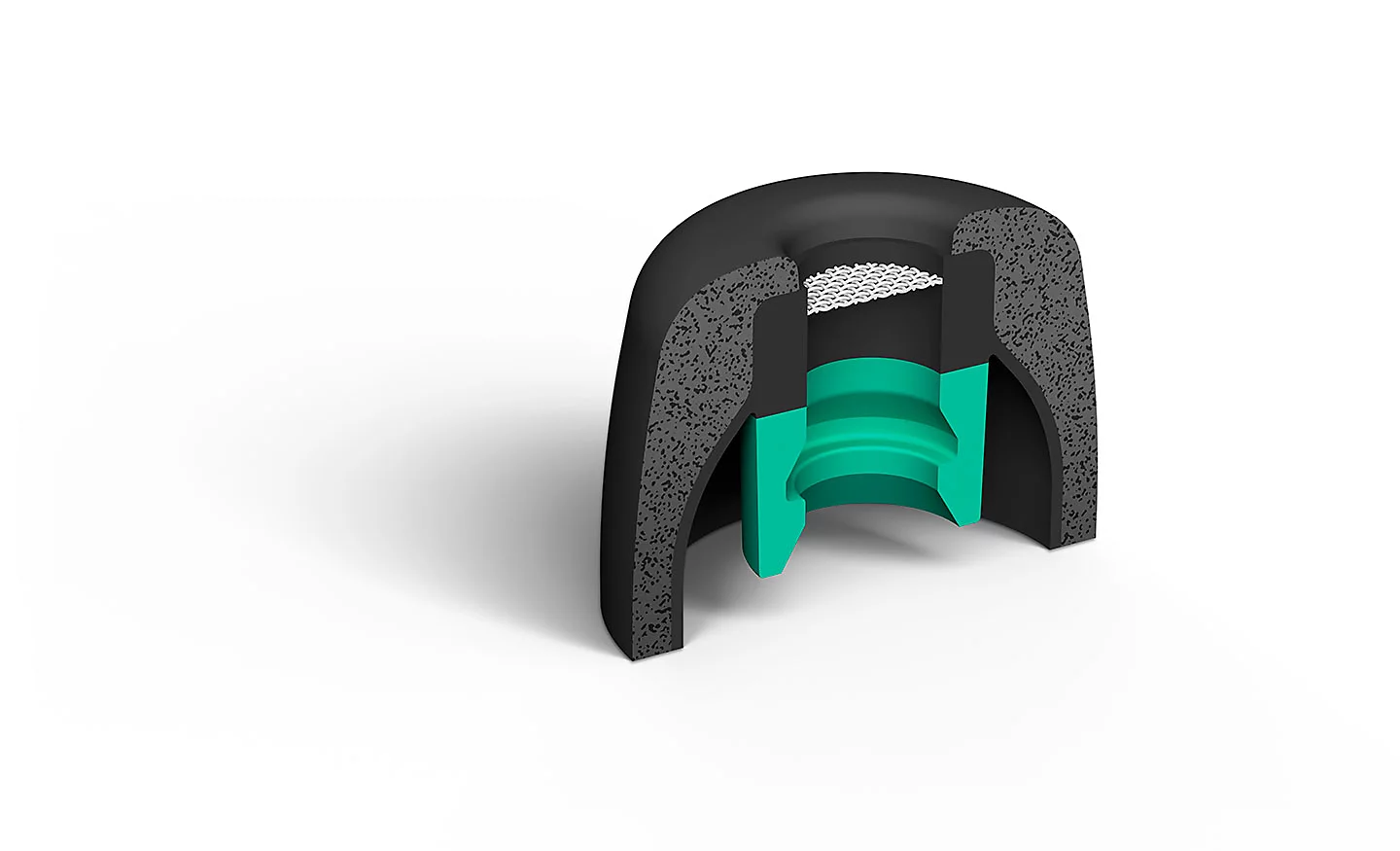 The specially designed driver unit Dynamic Driver X able to reproduce lower frequencies has been improved using a dome-edge separation structure that combines different materials, allowing for a more accurate generation of cancellation waves in the lower frequencies.