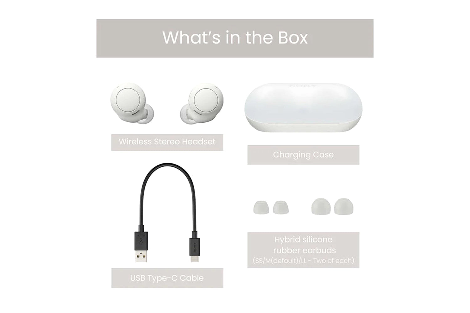• Included Accessories Charging Case, USB Cable, Hybrid silicone rubber earbuds