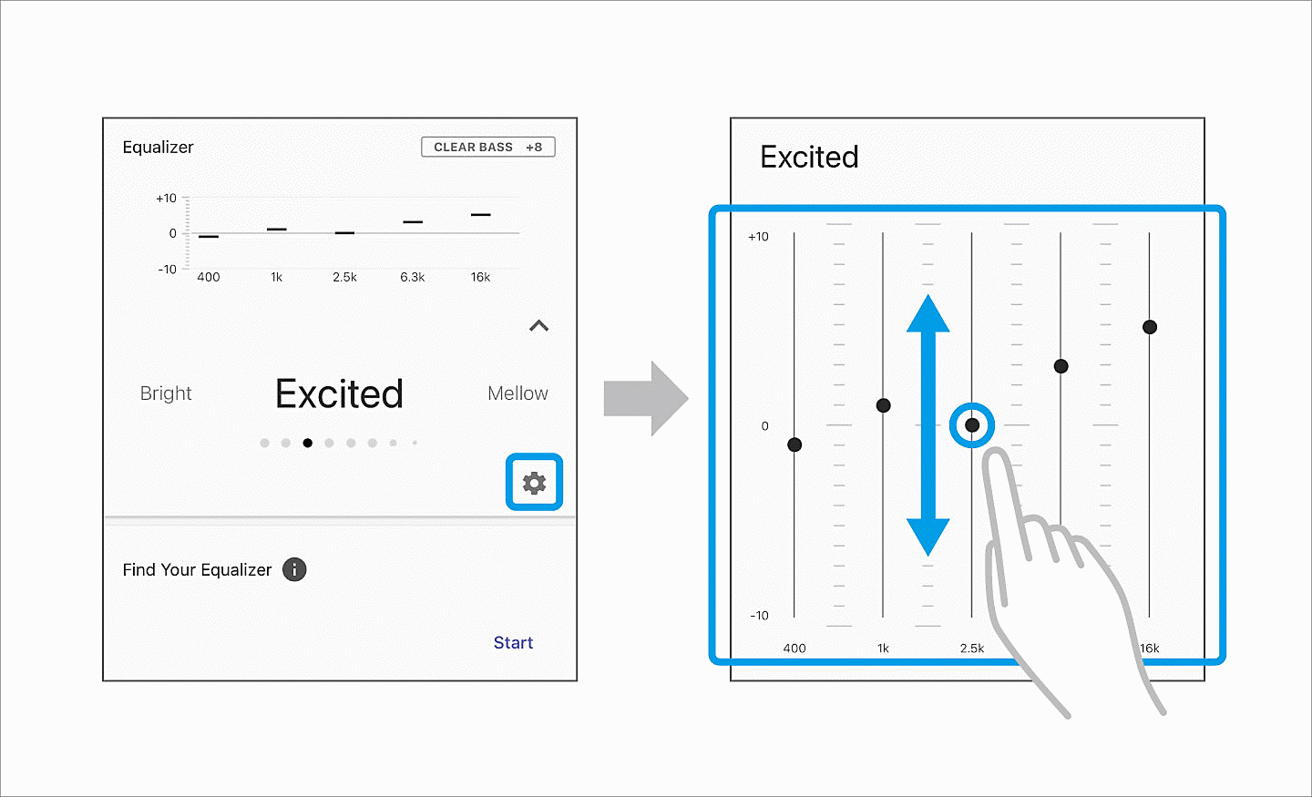 Tailor your sound to your personal preference. Choose from a variety of presets that match the genre of music you're listening to or create and save your own presets using the EQ Custom feature on the Sony│Sound Connect app.