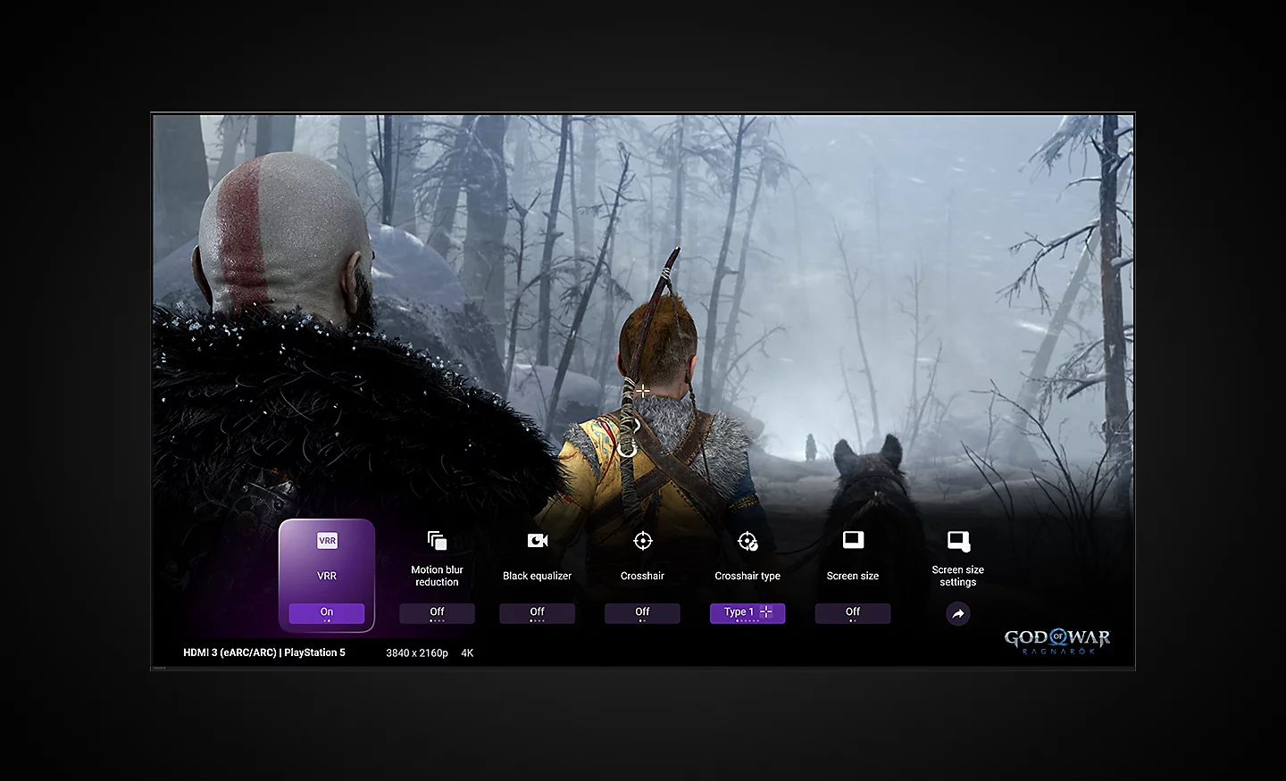 BRAVIA automatically switches into Game Mode with PS5 to minimise lag and maximise responsiveness. It switches back to Standard Mode when watching movies for more expressive scenes.[4,5]