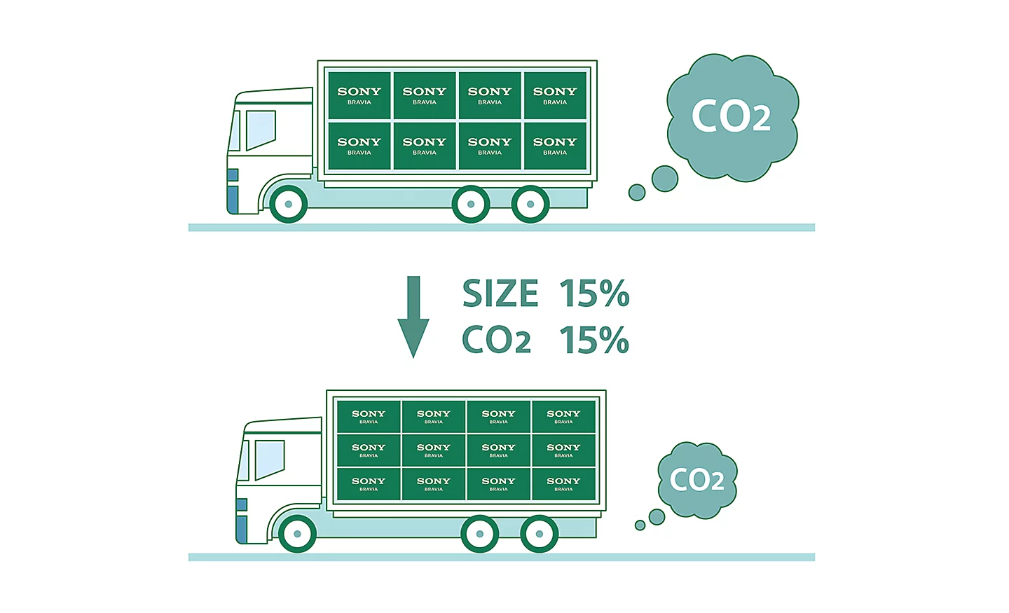Sony new packaging is 15% smaller and 12% lighter which optimises transport efficiency and reduces CO2 emissions by as much as 15%.[7]