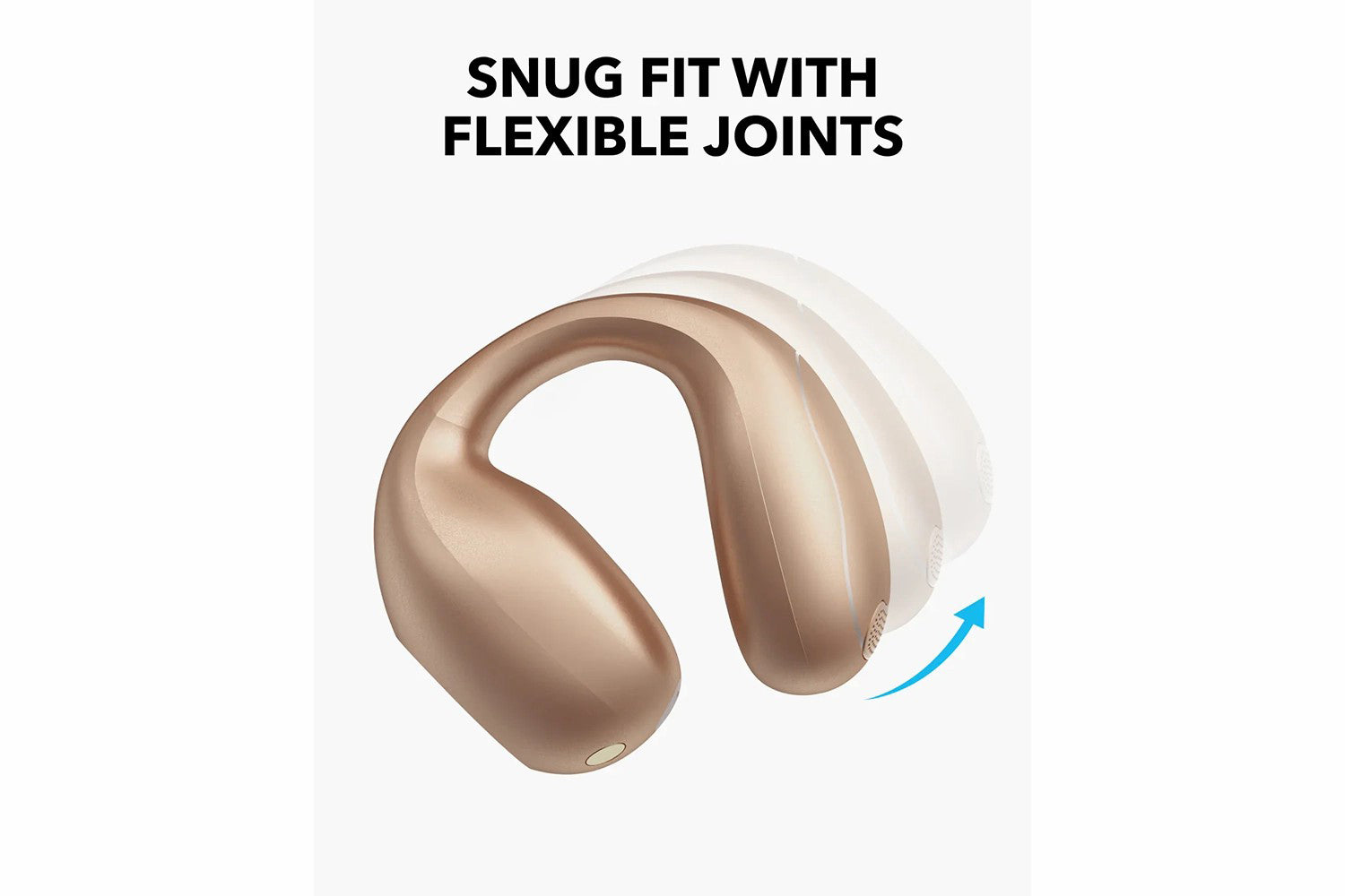 Soundcore C40i clip-on headphones sport 0.5mm memory titanium wires and soft TPU for their flexible joints. They ensure 1,000-bend durability² and an adaptable fit, effortlessly conforming to your ears and staying securely in place throughout the day.