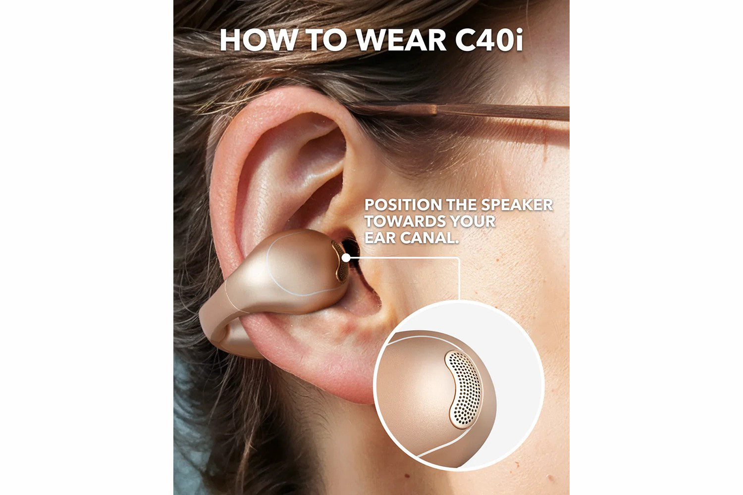 Experience unmatched breathability with soundcore C40i. It easily clips onto your ears and fits seamlessly alongside glasses and other accessories. Perfect for your dynamic lifestyle-clip on and power through your day.