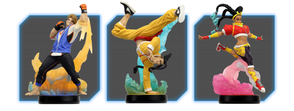 You can tap the Luke, Jamie or Kimberly amiibo figurines (sold separately) to earn various rewards and save settings such as your button layout and character’s outfit. A set of 22 amiibo cards featuring many fighters from the game is also available!