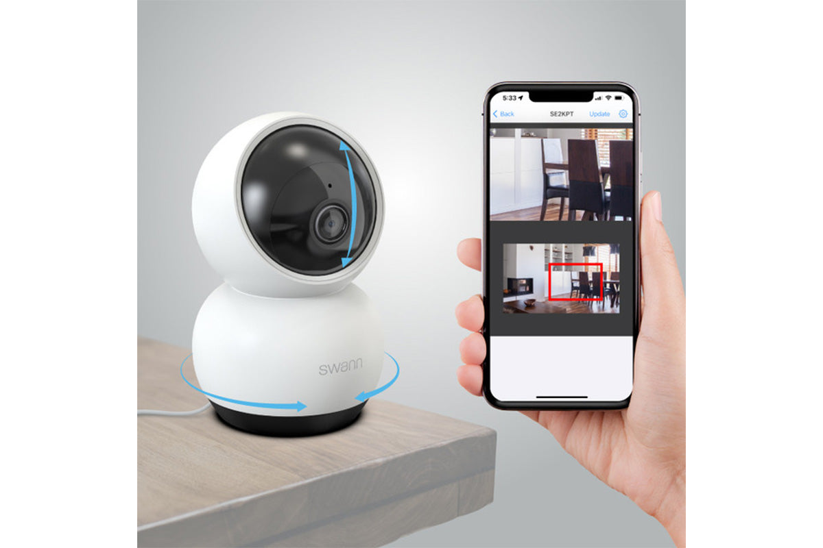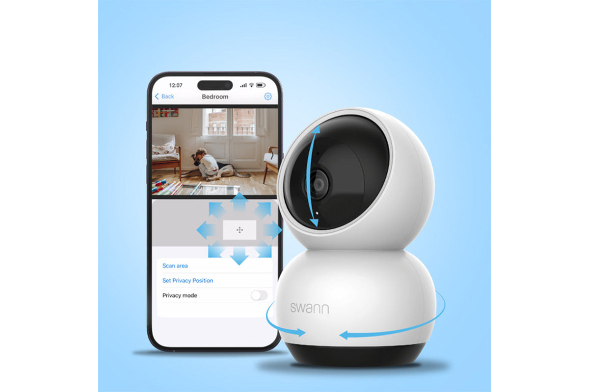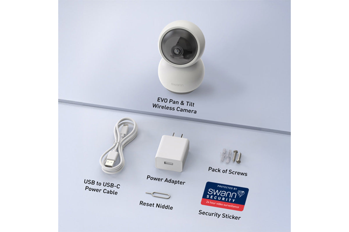 Introducing the Swann EVO Pan & Tilt Wi-Fi Camera, the ultimate in-home surveillance with 355° horizontal pan & 65° vertical tilt for maximum coverage. Connect to power and Wi-Fi then effortlessly control what the camera sees, panning left & right and tilting up & down, using the controls in the app. Experience 2K Quad HD video resolution for unmatched clarity in color in ambient light & in B&W in low light & night-time. Add a MicroSD card for free recording. Engage in two-way audio communication for added security. With video-based motion & people-sensing technology, you can expect more reliable mobile alerts. Elevate your surveillance game with the Swann EVO Wi-Fi Pan & Tilt Camera. It’s security you can trust.