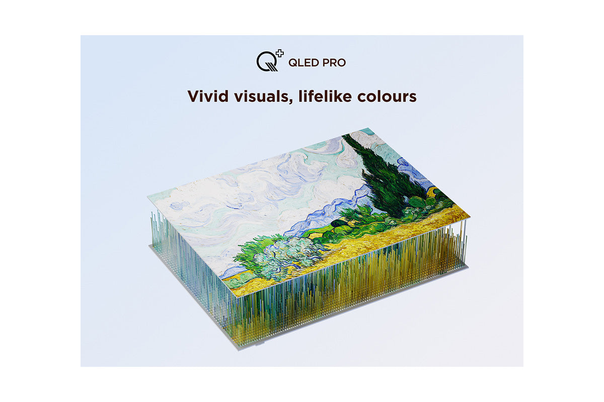 Experience ultra-rich, accurate color and lifelike clarity with (QLED) Quantum Dot technology artwork and entertainment, pops with brilliance. More color. More realism. More to love.