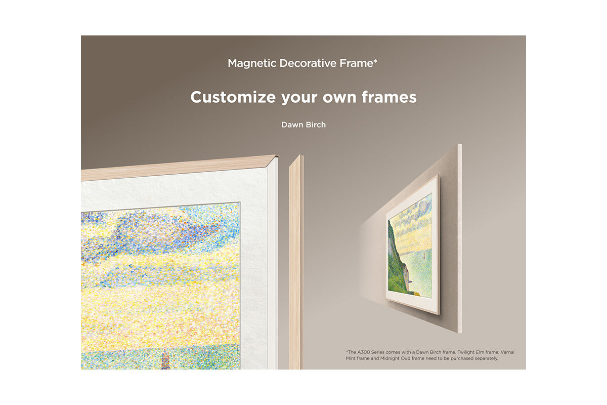 The TCL NXTVISION comes ready to impress with a sleek off-white bezel and a light wood magnetic frame included. Snap it on in seconds to match your mood, your space, or your style. One stunning screen, customizable art. Interior-friendly finish.