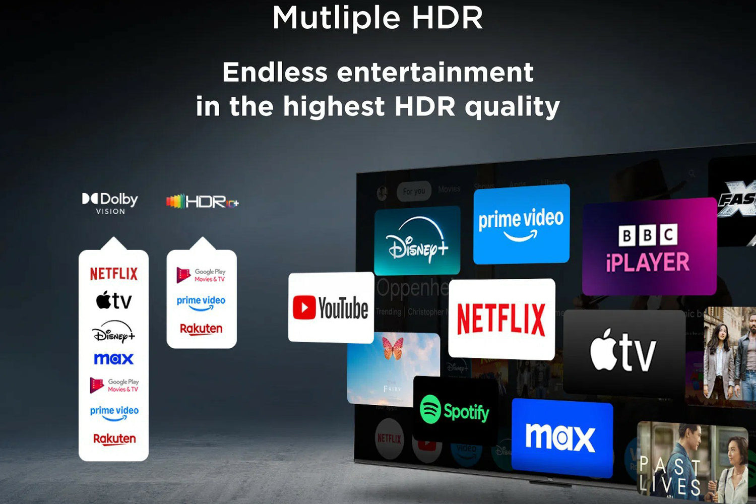 The Powerful TCL Ai HDR supports almost all HDR formats such as Dolby Vision, HDR 10+, HDR10, HLG, etc. And plus, it could upscale SDR to HDR by enhancing the picture quality in movies and shows with a wider range of colours with brighter highlights.