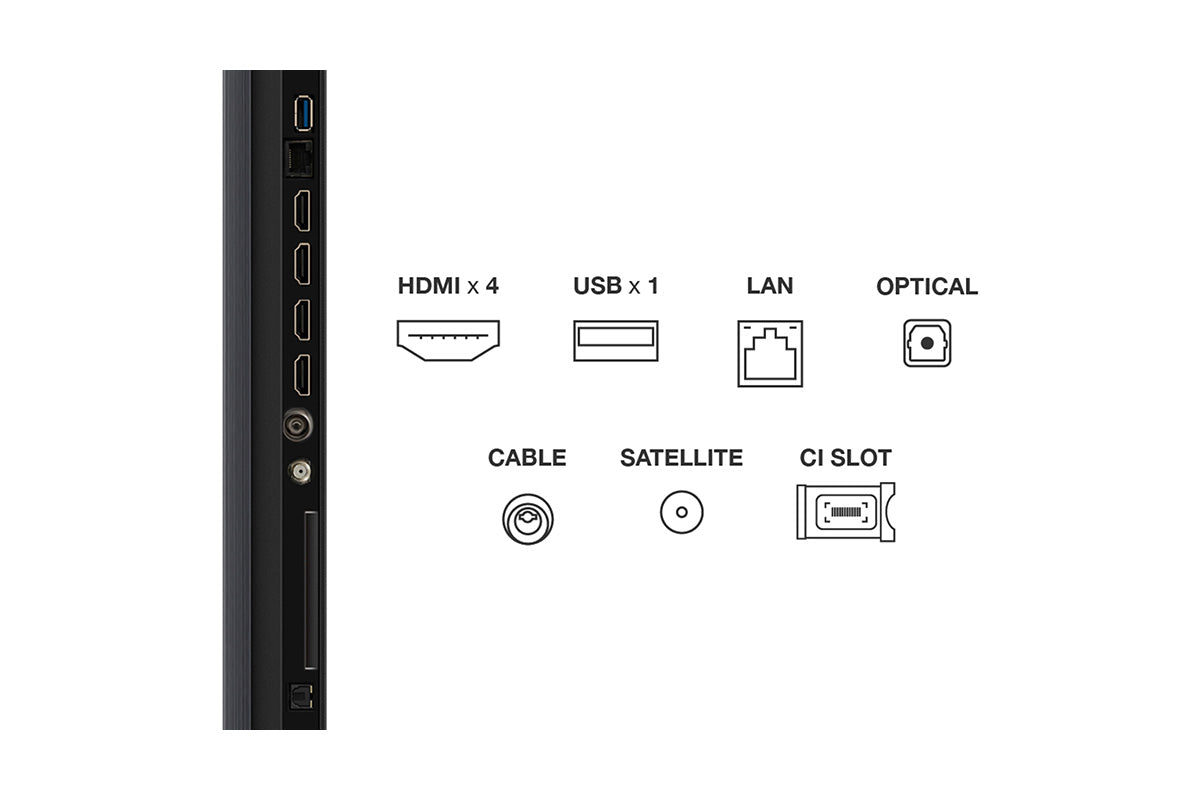 "Features, specs, certifications vary by model, screen size and region, and are subject to change at any time without notice.