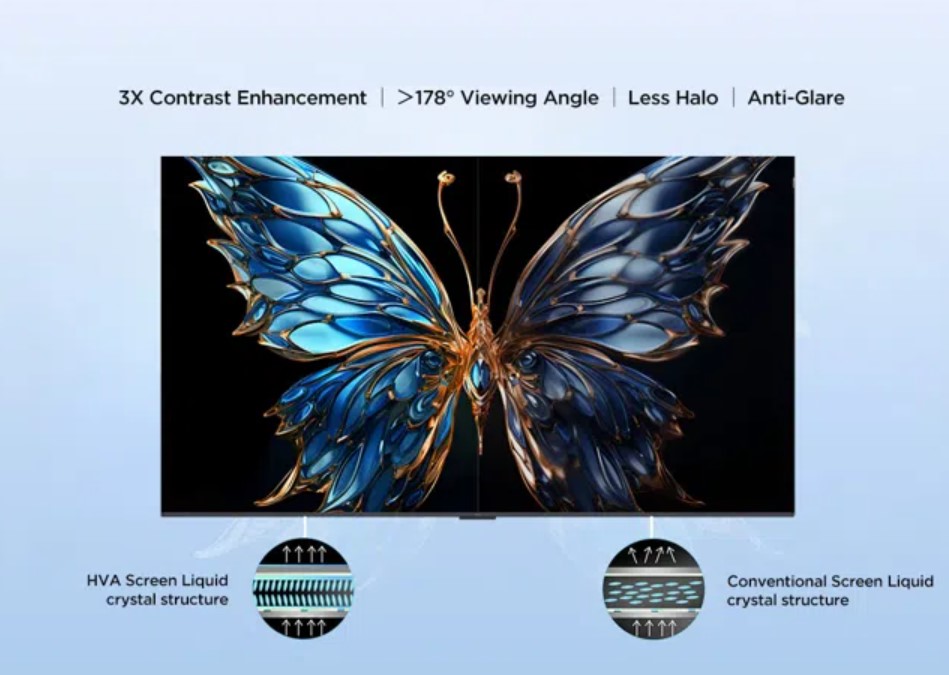 With innovative technology, TCL self-developed HVA Screen effectively emphasizes stronger and more accurate contrast while removing image halo and ambient light interference, presenting a clearer and more detailed stunning picture quality.