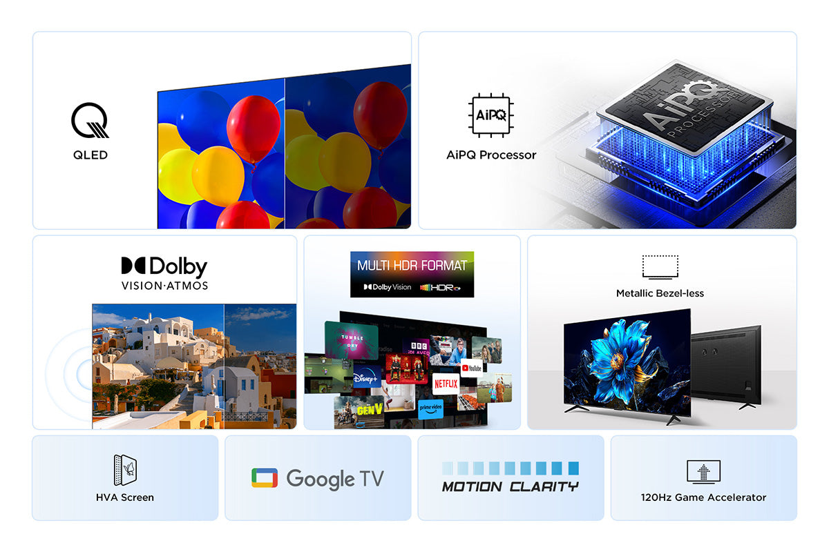 TCL's self-developed AiPQ Processor, incorporates numerous TCL's unique image quality tuning algorithms. This chip has excellent intelligent sensing capabilities and can make pixel-level adjustments to the image quality, thus providing a top-notch viewing experience.