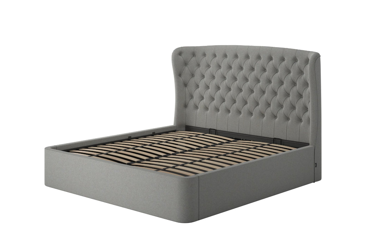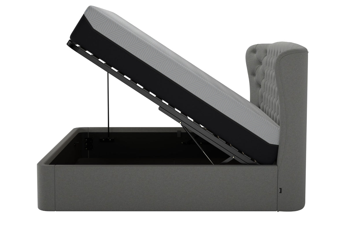 Featuring a stately, high-backed, winged headboard, this bed makes a bold statement while offering an air of timeless elegance. The plush buttoned detailing adds an extra layer of luxury inviting you to unwind in comfort, while the chic, slimline frame brings a modern edge to its design. Perfect for those who appreciate both form and function, the Holcot also offers a spacious ottoman storage feature, allowing you to keep your bedroom neat and organized without sacrificing style.