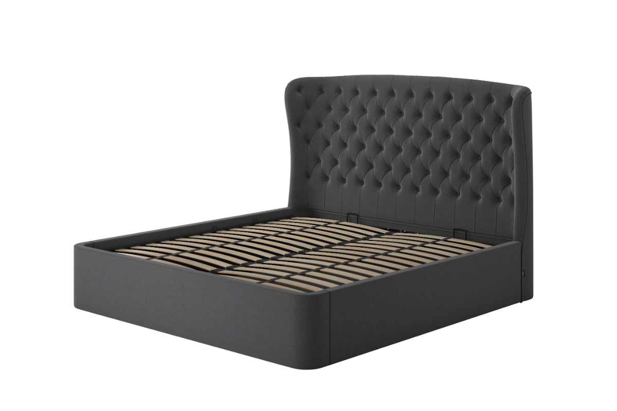 Featuring a stately, high-backed, winged headboard, this bed makes a bold statement while offering an air of timeless elegance. The plush buttoned detailing adds an extra layer of luxury inviting you to unwind in comfort, while the chic, slimline frame brings a modern edge to its design. Perfect for those who appreciate both form and function, the Holcot also offers a spacious ottoman storage feature, allowing you to keep your bedroom neat and organized without sacrificing style.