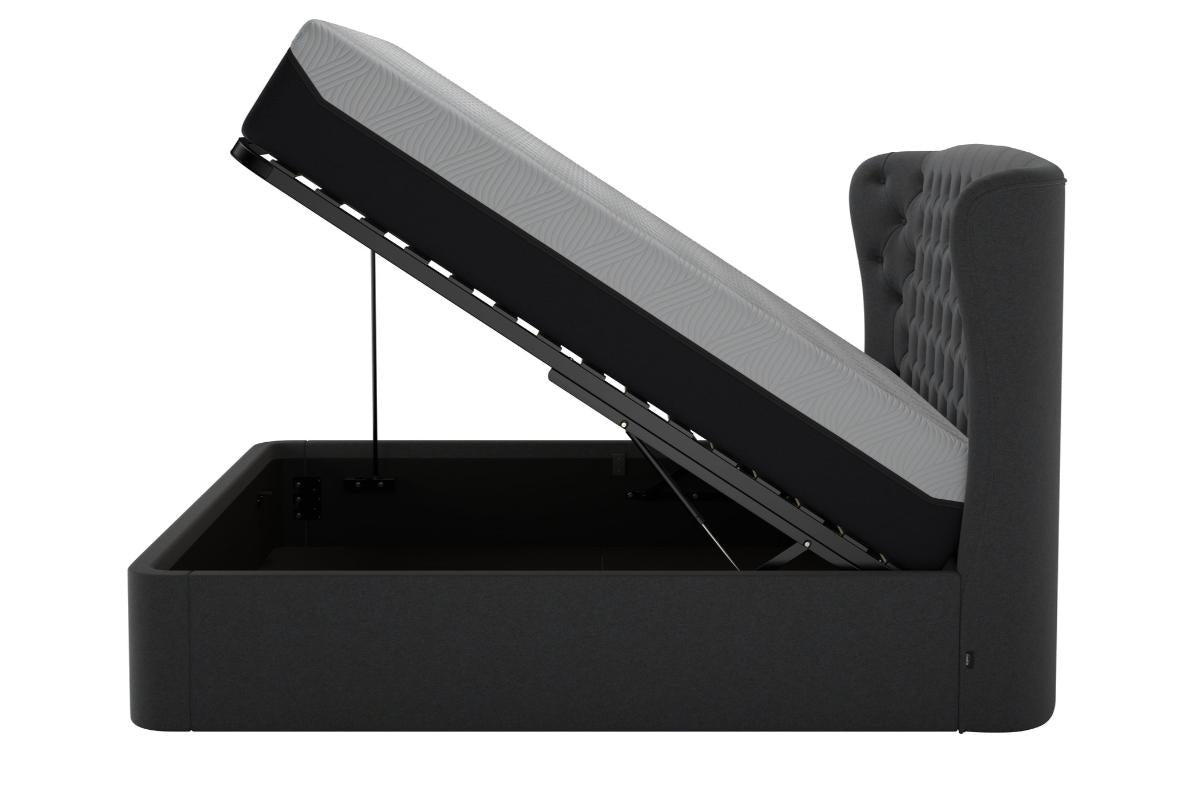 Featuring a stately, high-backed, winged headboard, this bed makes a bold statement while offering an air of timeless elegance. The plush buttoned detailing adds an extra layer of luxury inviting you to unwind in comfort, while the chic, slimline frame brings a modern edge to its design. Perfect for those who appreciate both form and function, the Holcot also offers a spacious ottoman storage feature, allowing you to keep your bedroom neat and organized without sacrificing style.