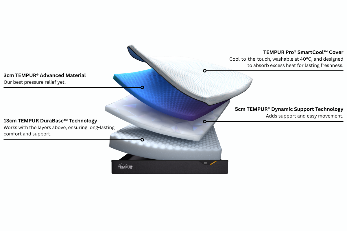 Designed with your comfort in mind, the Tempur Pro SmartCool mattress boasts next-level pressure relief while adapting to your body thanks to the all-new TEMPUR Advanced Material. Using the exclusive SmartCool technology, this mattress absorbs excess body heat and keeps you feeling cool throughout the night – perfect for hot sleepers!