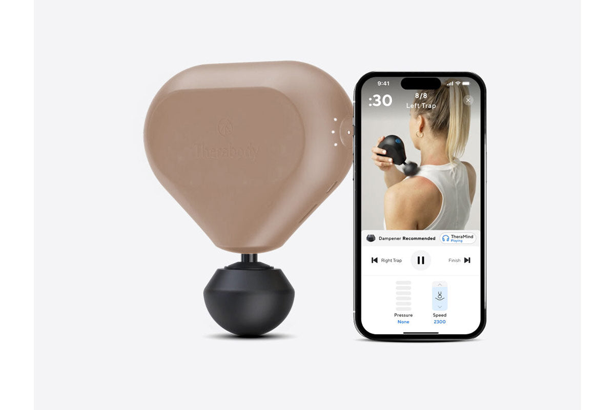 Theragun power, packed into an ultra-portable package to keep you moving wherever you go. Now 20% smaller and 30% lighter, Theragun mini is proven to relieve aches and pains and improve recovery. Plus, it's Bluetooth-enabled so you can access our whole library of personalized wellness routines in the Therabody app.