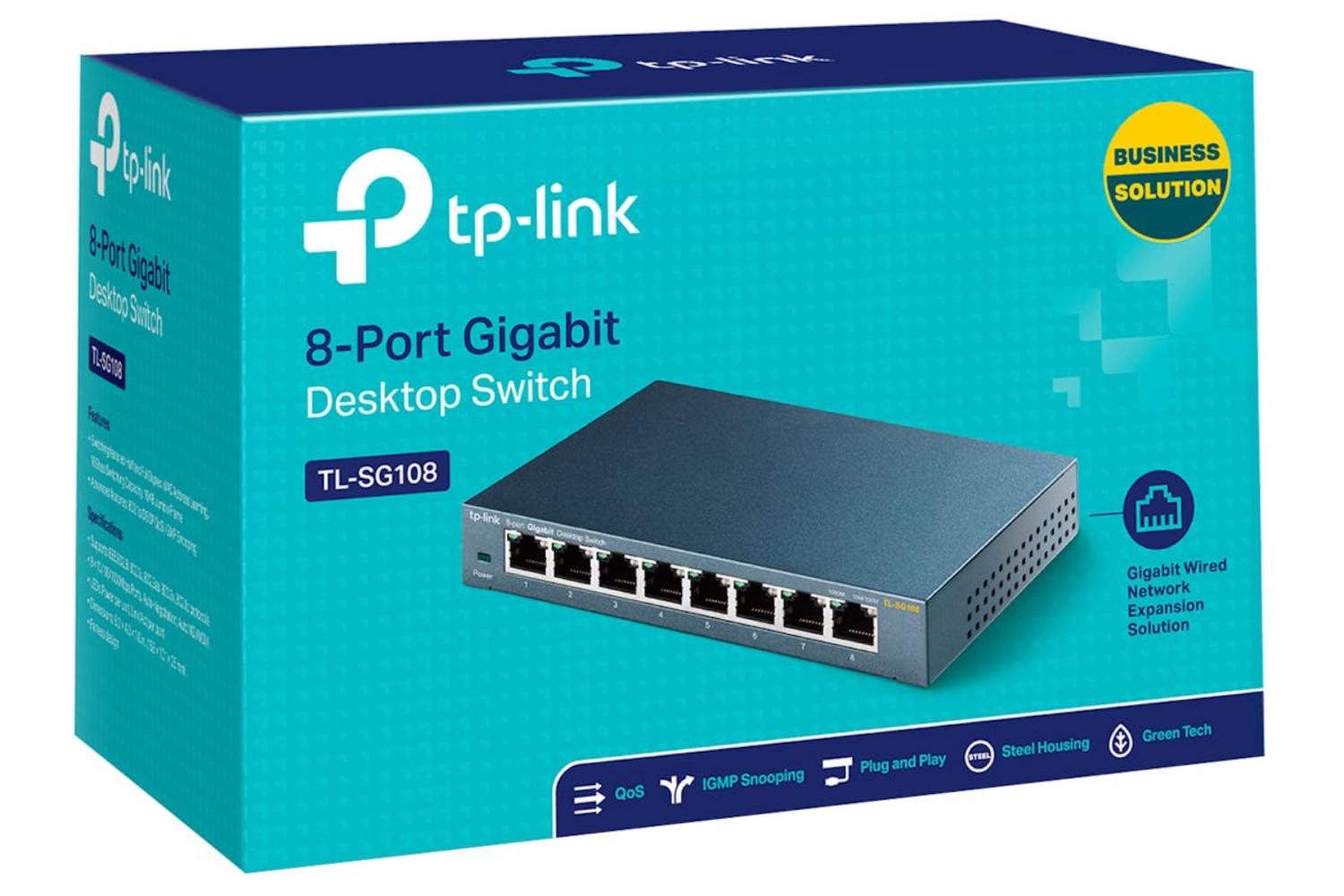 Increase the speed of your network with the TL-SG108 8-port Gigabit desktop switch. Non-blocking, 8 10/100/1000Mbps ports enables instant transferring of large, bandwidth intensive files without interference.