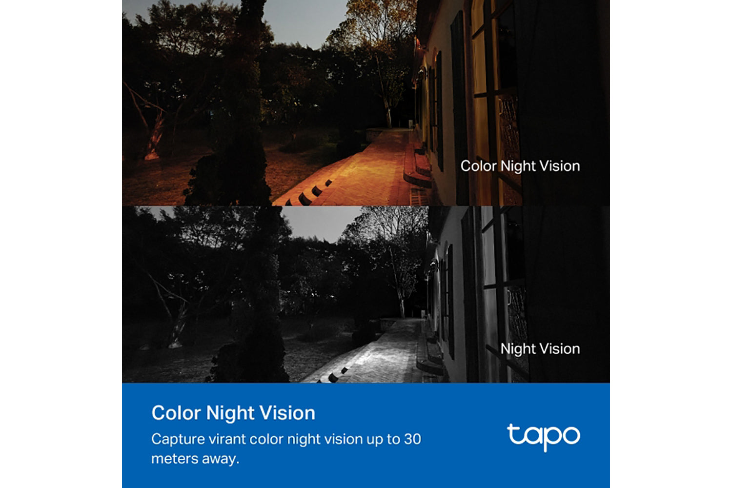Capture vibrant color night vision up to 30 meters away for more details in low-light conditions. With smart mode, the live view turns color night vision after detecting person.