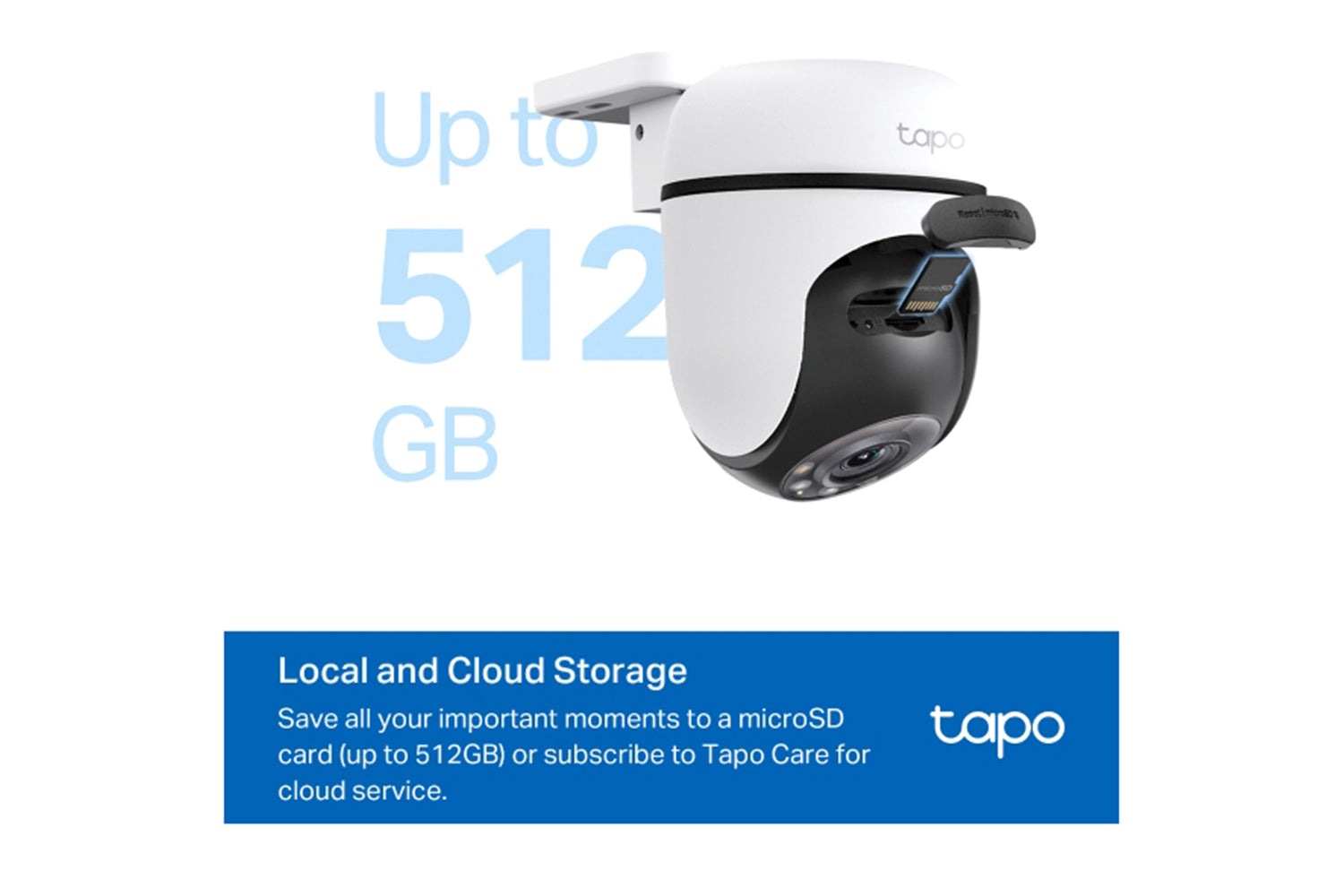 Save all your important moments to a microSD card[1] (up to 512 GB) or subscribe to Tapo Care for cloud service after a free trial.
