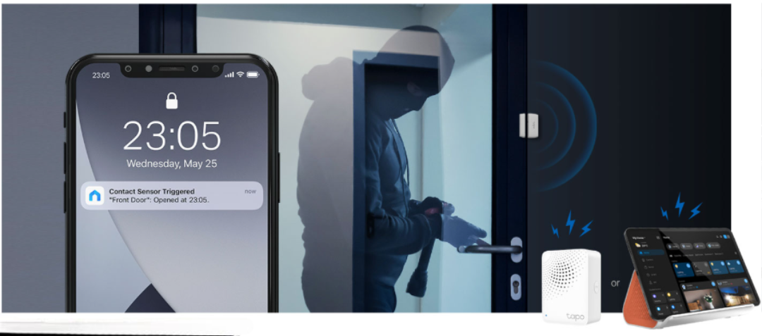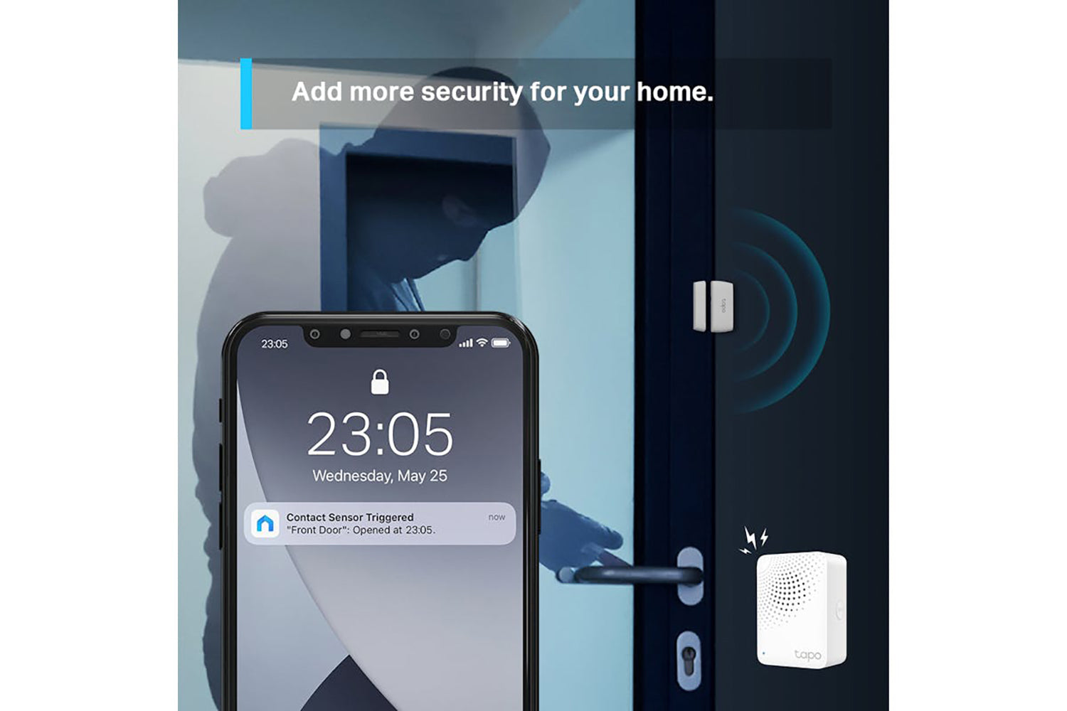 Receive instant alerts on your phone when a door or window is opened unexpectedly. The Tapo Hub and Tapo Homebase can sound a siren to warn of danger and deter intruders.
