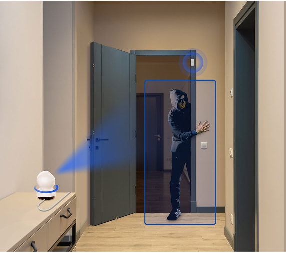 The instant a door or window opens, your Tapo Security Cameras can turn to the intruder and sound an alarm.