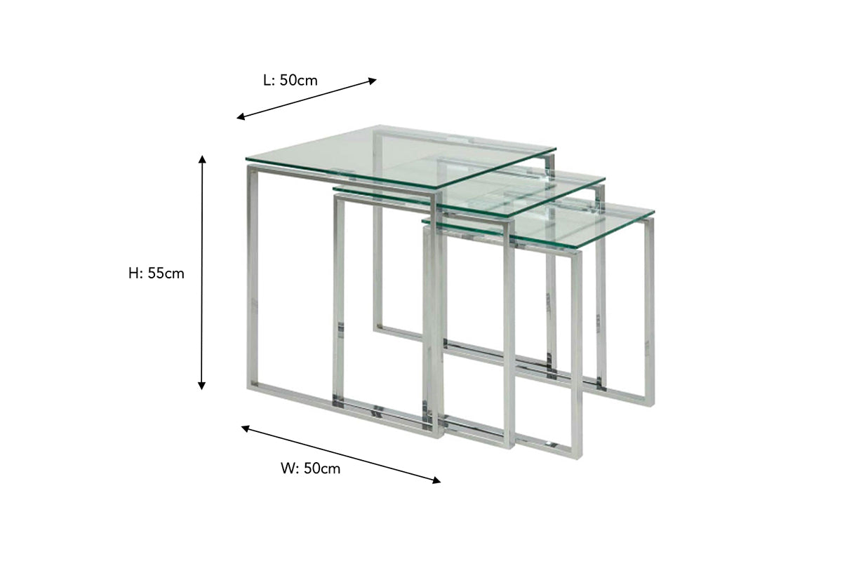 Demonstrating an innovative design, the set includes three tables that can be neatly stored away when not in use; perfect for those who love to host but are short on space. The glass tops are a breeze to clean while the chrome metal frame ensures a secure base.