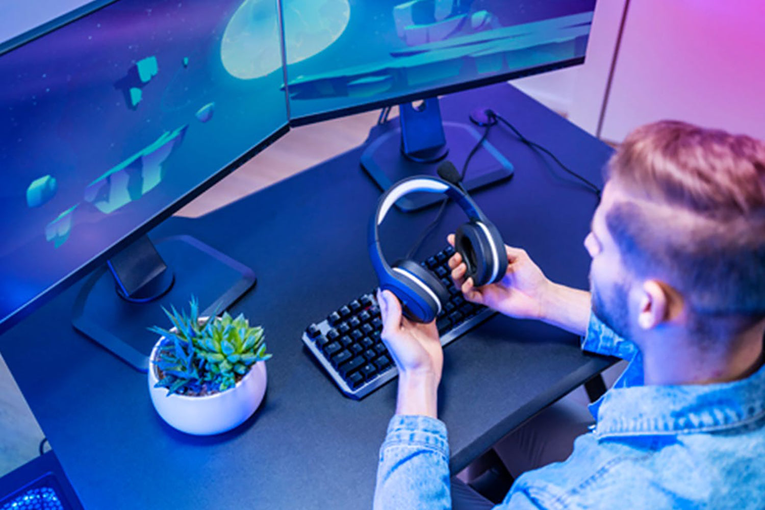 Lightweight and wireless gaming headset made with eco-friendly material.