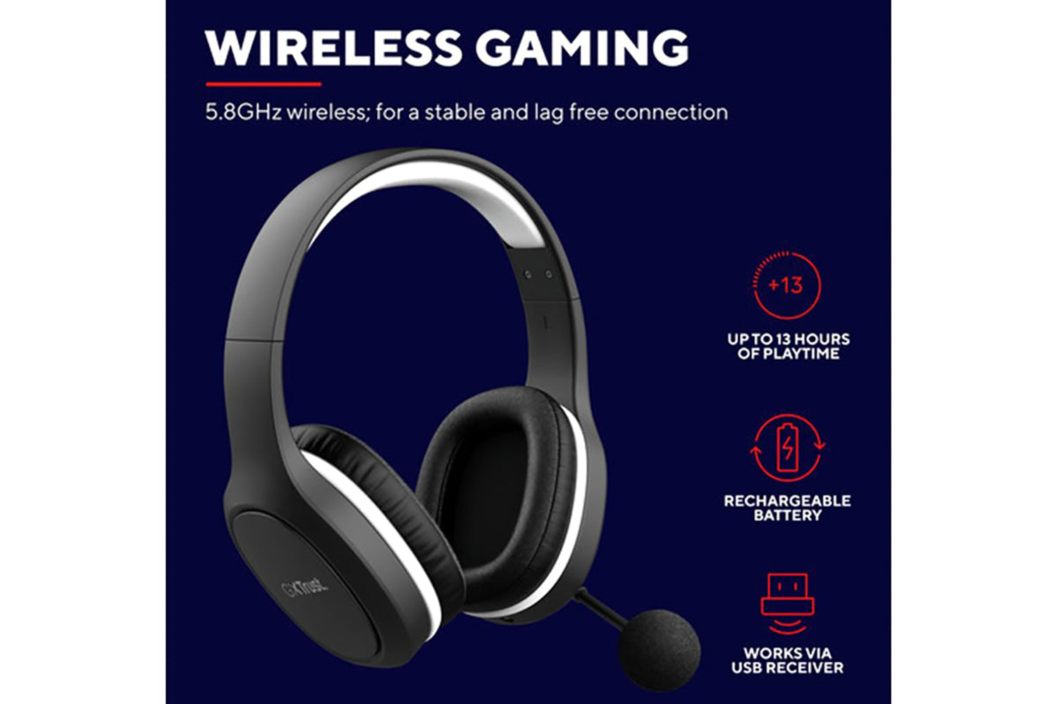 An integrated rechargeable battery offers 13 hours of playtime, while the included 5.8GHz USB dongle gives you a blazing-fast connection, every time you play.