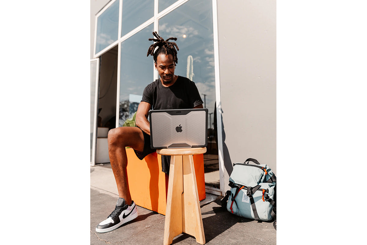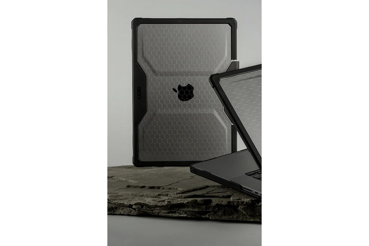 The Plyo series is a beautiful blend of striking design and premium functionality. It features a one-piece hinged design equipped with UAG hallmark armor shell and soft impact resistant core. Reinforced corners are built to cushion daily impacts. A tactile grip frame surrounds the edges and enhances your grip, making it easier to carry and handle your laptop. Four rubberized feet on the bottom of the cover ensure your MacBook stays firmly in place on any surface. UAG precise fit design guarantees unobstructed access to all your MacBooks ports and features. Built to keep up with your daily travels, no matter how rugged your routine gets.