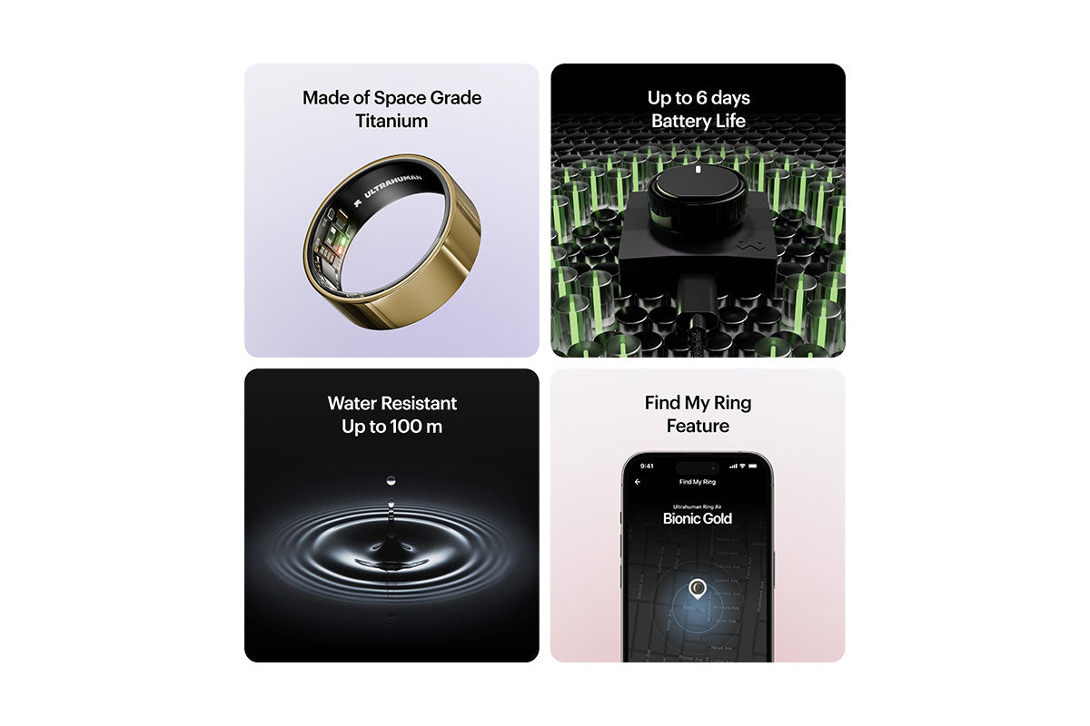 The Ultrahuman Ring is crafted from space-grade titanium, offering unmatched strength and lightweight comfort. It’s water-resistant up to 100m, making it perfect for everyday wear, workouts, and even swimming.