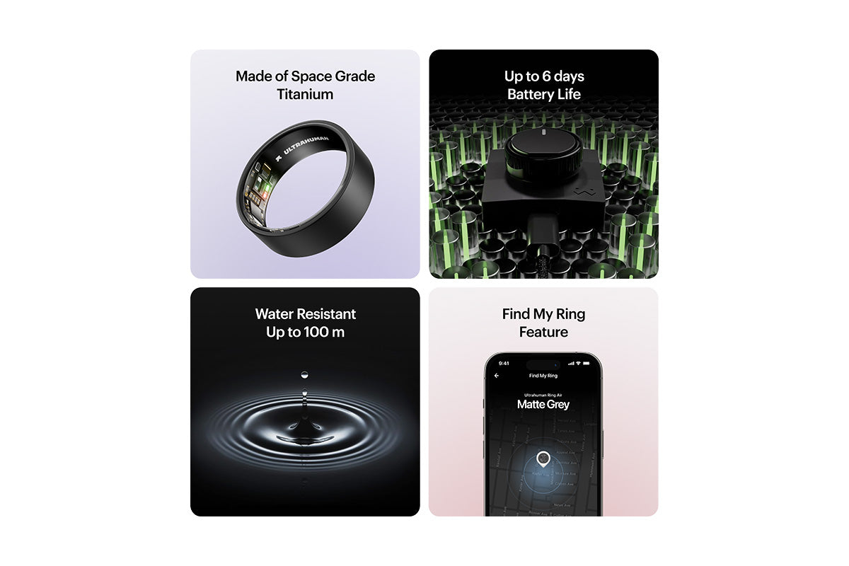 The Ultrahuman Ring is crafted from space-grade titanium, offering unmatched strength and lightweight comfort. It’s water-resistant up to 100m, making it perfect for everyday wear, workouts, and even swimming.