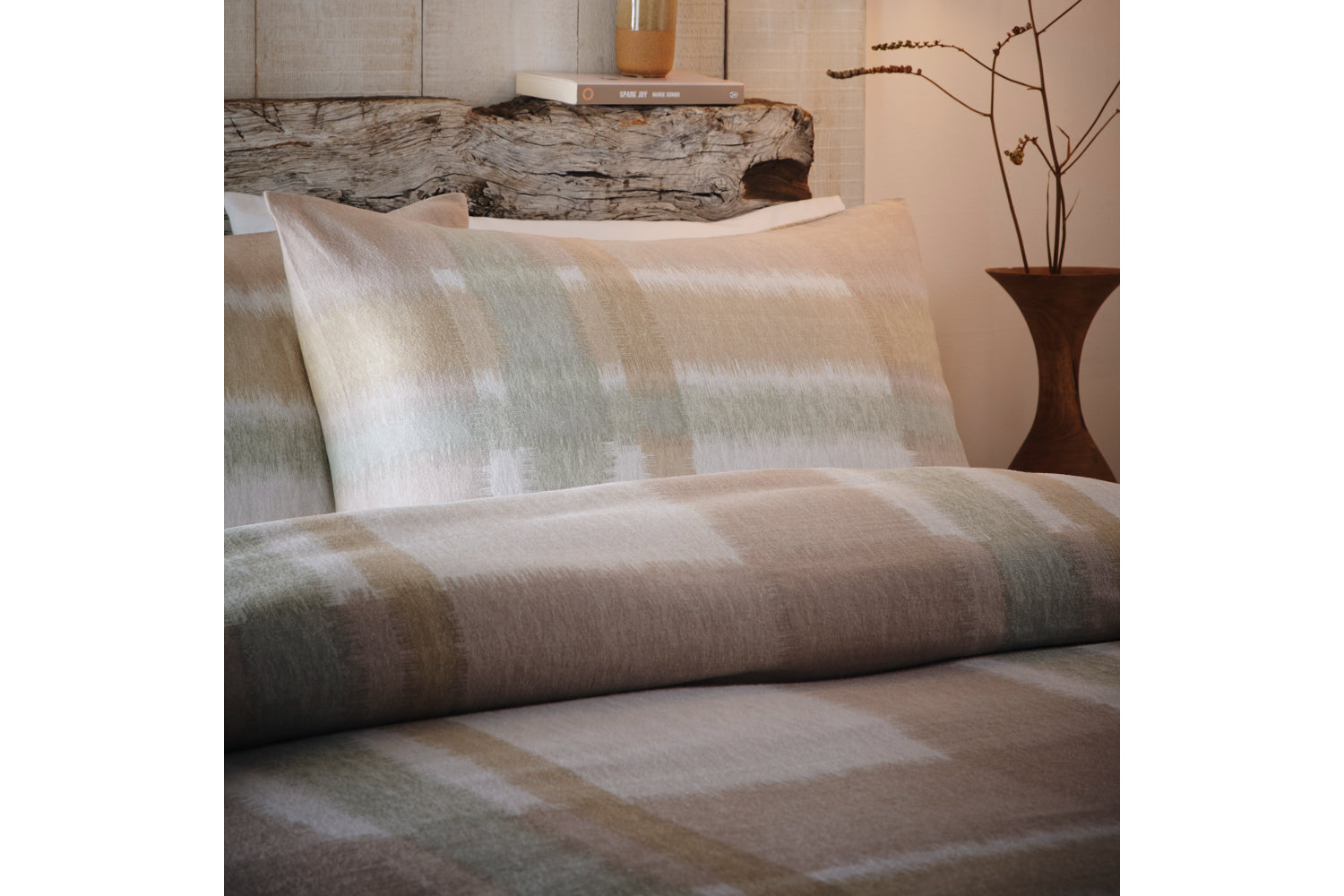 Wrap yourself up in comfort and style with the luxuriously soft Verbier quilt set. Crafted from a 100% brushed cotton fabric that's been specially finished to ensure an unparalleled softness. It features a reversible check design in a natural hue that radiates that cosy feeling while integrating with a wide range of decorative styles.