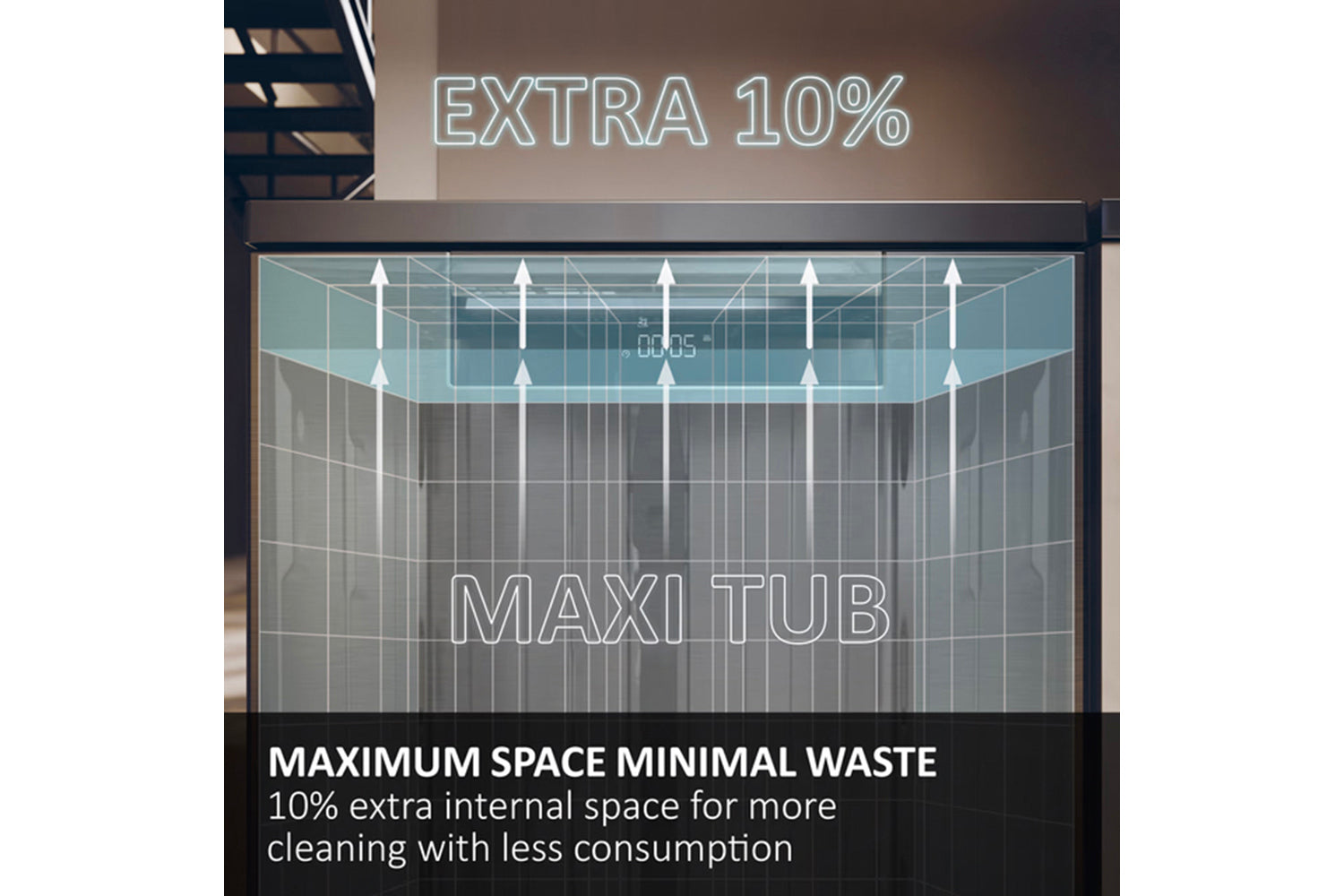 If you need lots of space for all the household dishes, look no further than the Maxi Tub. It gives you 10% more internal volume in a standard-size tub, making this the most spacious dishwasher on the market. So, more items loaded into the tub equals less energy, water and time consumption for optimised results.