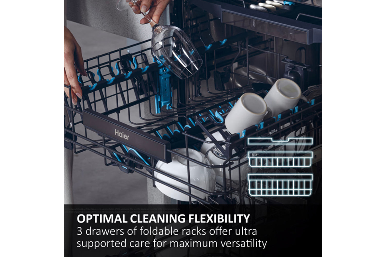 Give your utensils some extra sparkle with Haier’s Cutlery Shine Plus technology. Simply arrange your cutlery in the top basket and let five rotating water nozzles and an additional spray arm clean everything with the perfect amount of water, pressure, and precision for outstanding results.