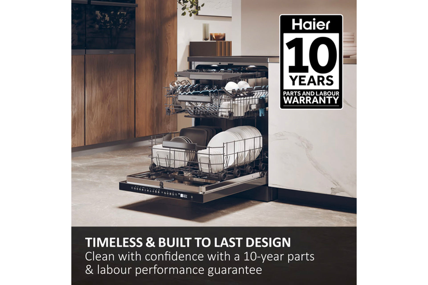 The ability to perform consistently and powerfully over time with maximum performance and extremely low consumption. Eco Inverter Motor technology makes after-meal clean-up quick, efficient, and super silent. The motor uses fewer moving parts, which helps reduce noise and vibrations and makes it even more durable for long-lasting performance. Clean with confidence time and again with Haier's 10-year performance guarantee.