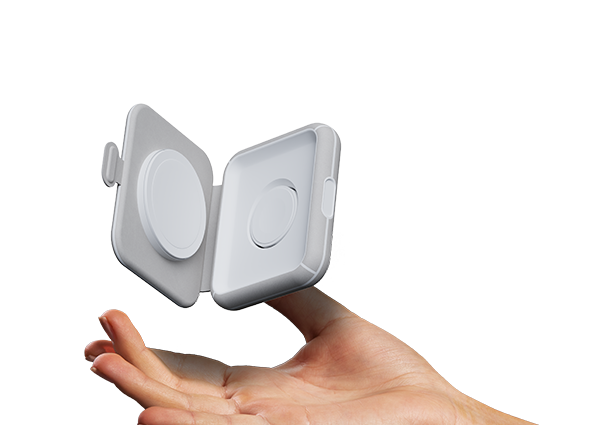 When the devices are charged again, you simply fold up the charging station. Thanks to the magnetic closure, you get a compact and handy package. The powerful yet lightweight magnet, keeps the Travel Charger folded up and protects the charging surfaces when not in use.