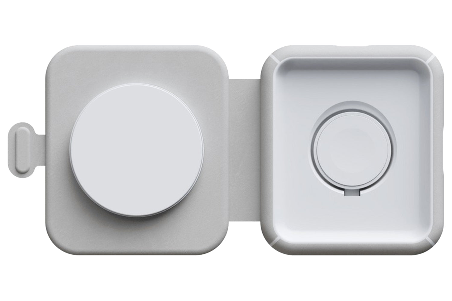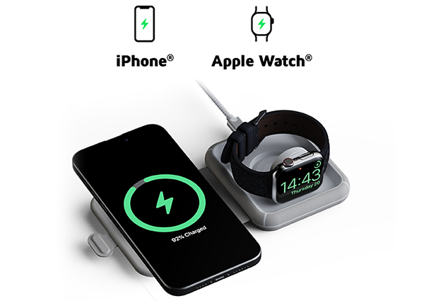 Unfold this Wireless 2in1 Travel Charger and charge your iPhone and iWatch simultaneously! UNFOLD, RELOAD and RELAX while charging at home, at the office or during an overnight trip.