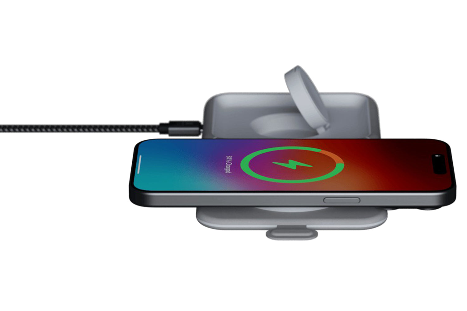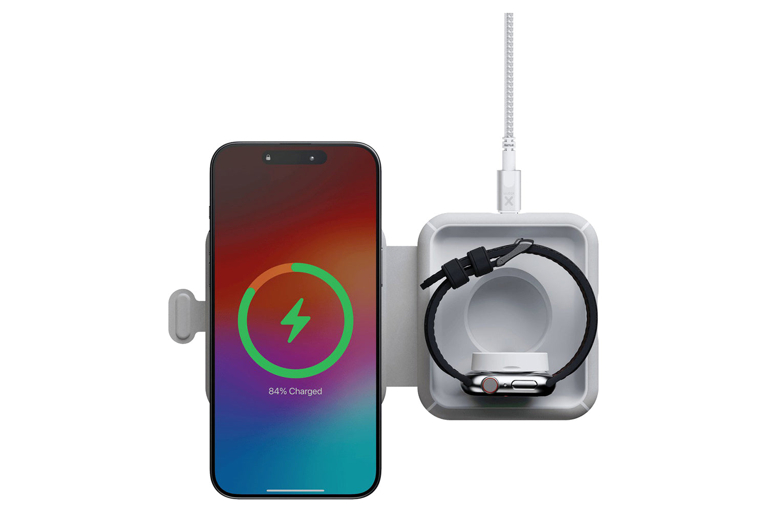 You can start charging immediately by using the included USB-C cable. Simply unfold the charger, plug the cable in the nearest adapter, place your iPhone and Watch on the charging pad and relax while your devices are being reloaded.