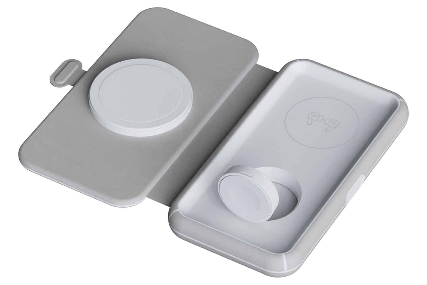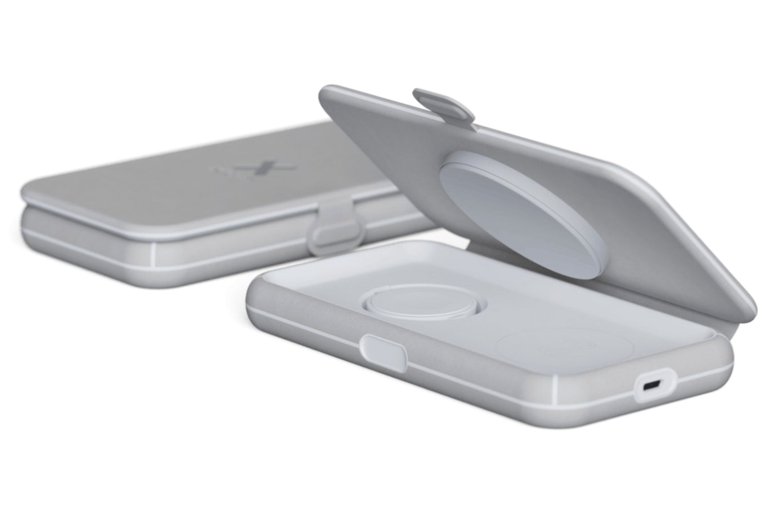 When not in use, you easily fold up the Travel Charger. Folded, it turns into a compact and handy package. The magnetic closure ensures protection of the charging surfaces and keeps them safe.